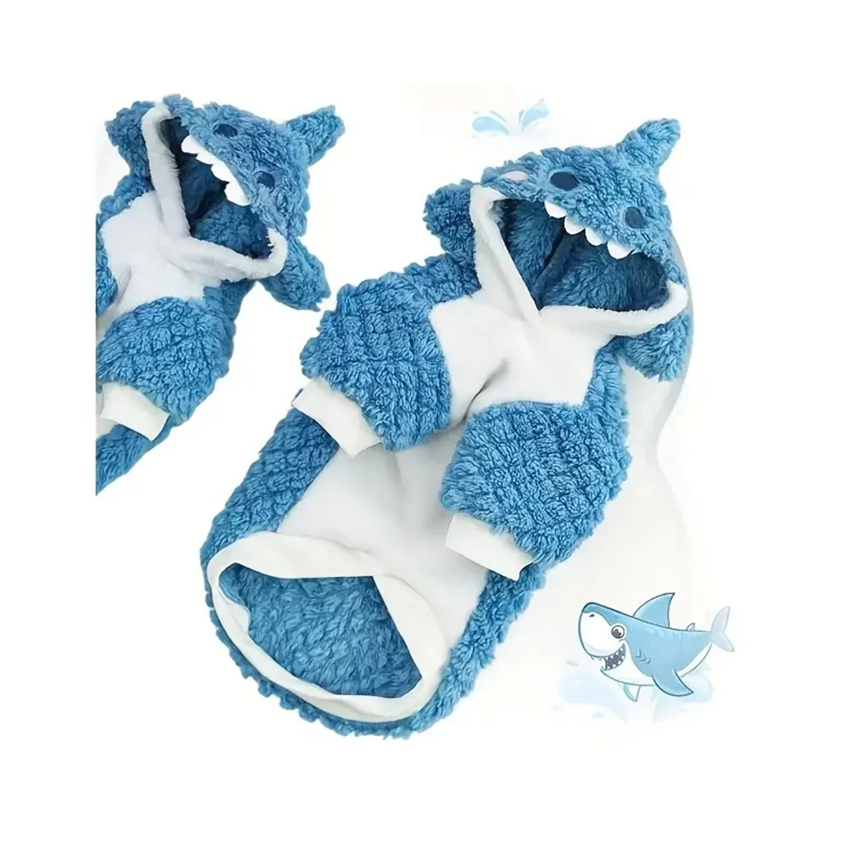 1 PCS Cozy Shark Plush Pet Hoodie - Thick, Warm Fleece Dog & Cat Sweater for Small to Large Breeds - Perfect for Fall/Winter