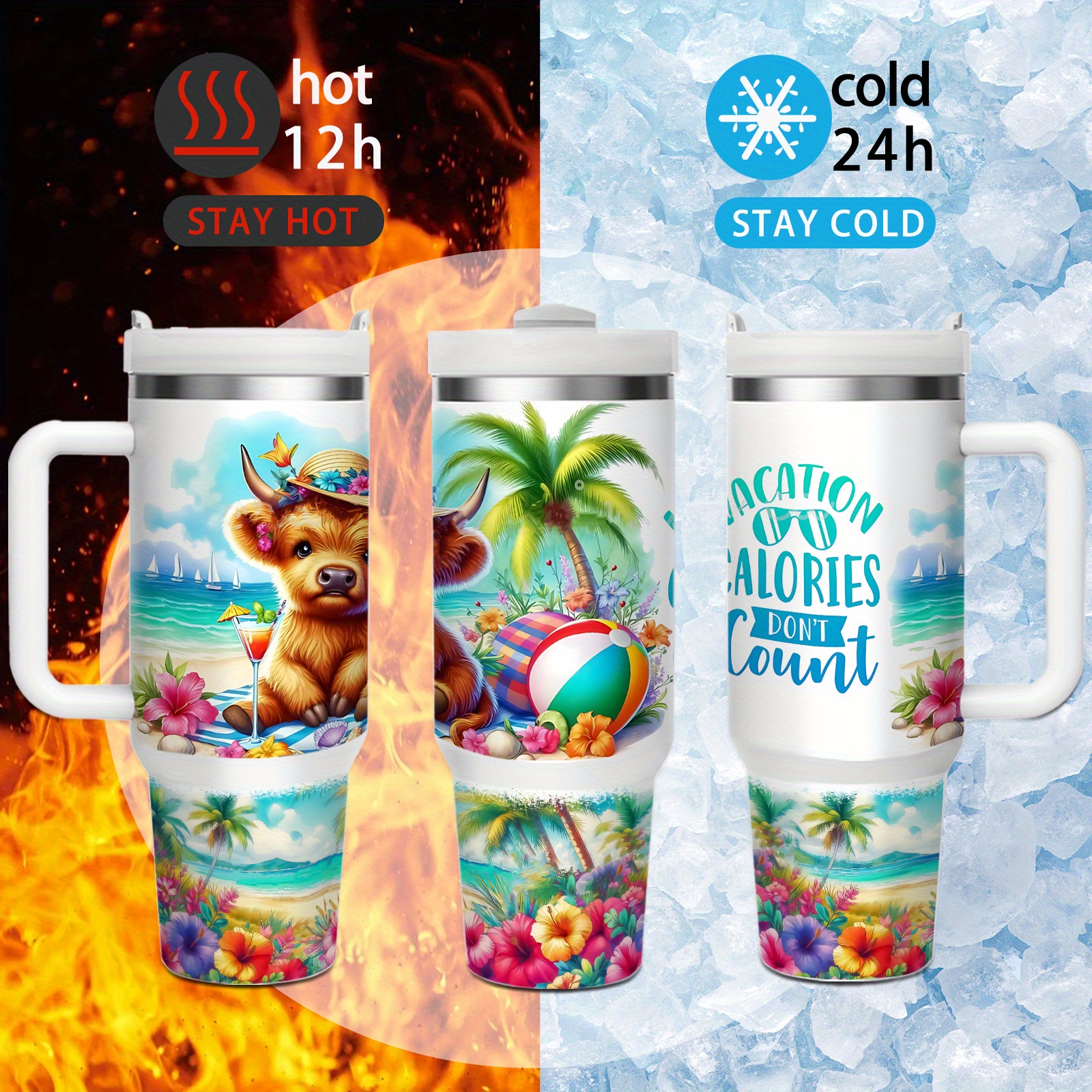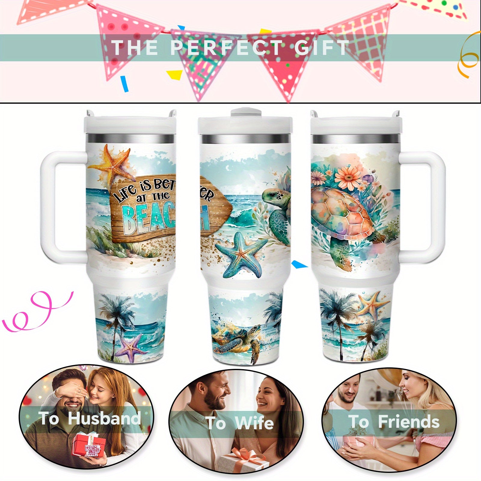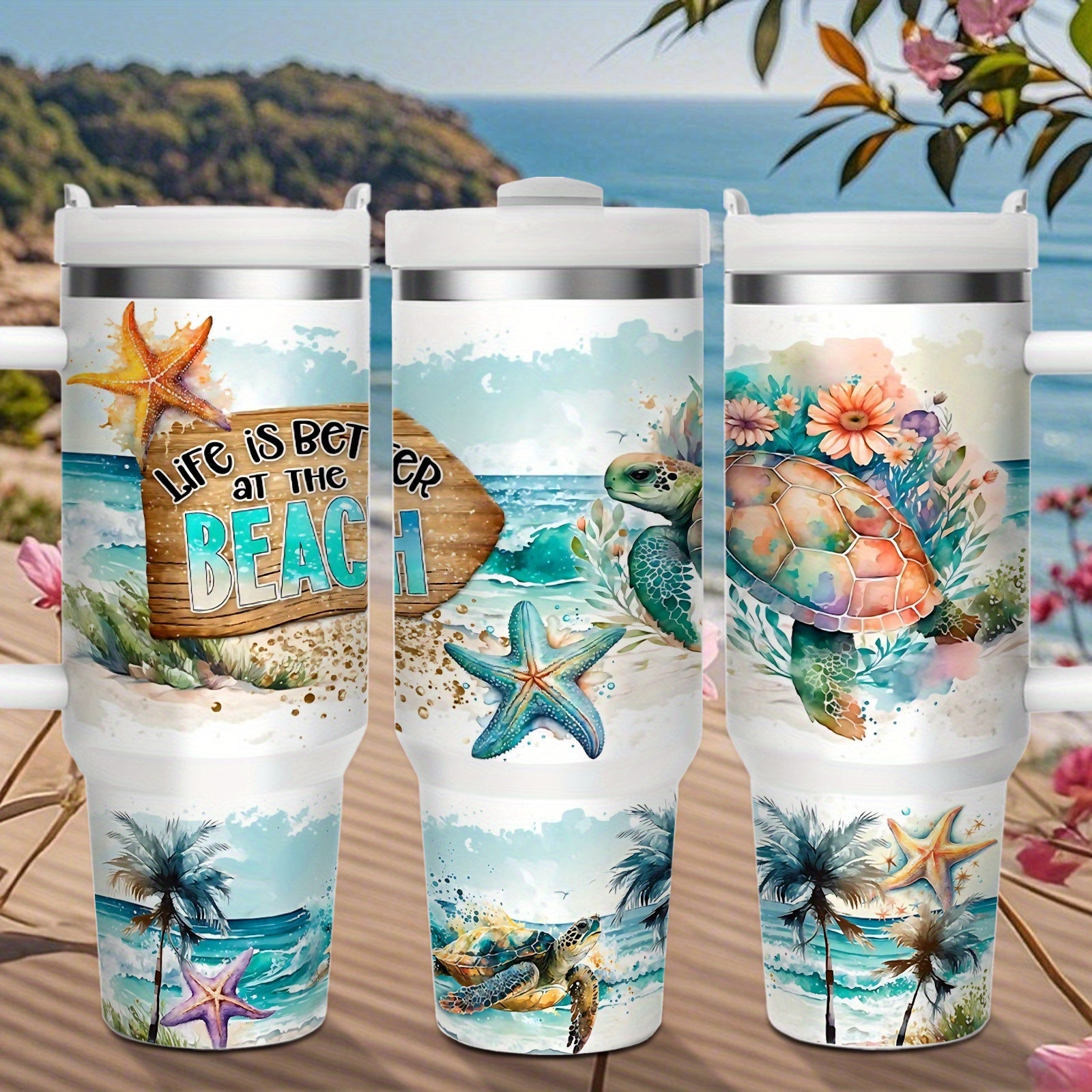 1pc 40oz/16oz Stainless Steel Tumbler with Lid And Straw, Double Wall Vacuum Insulated, Sea Turtle And Starfish Design, Keeps Drinks Hot 12H/Cold 24H, Ideal for Home, Office, Perfect for Christmas, Thanksgiving, Valentine's D