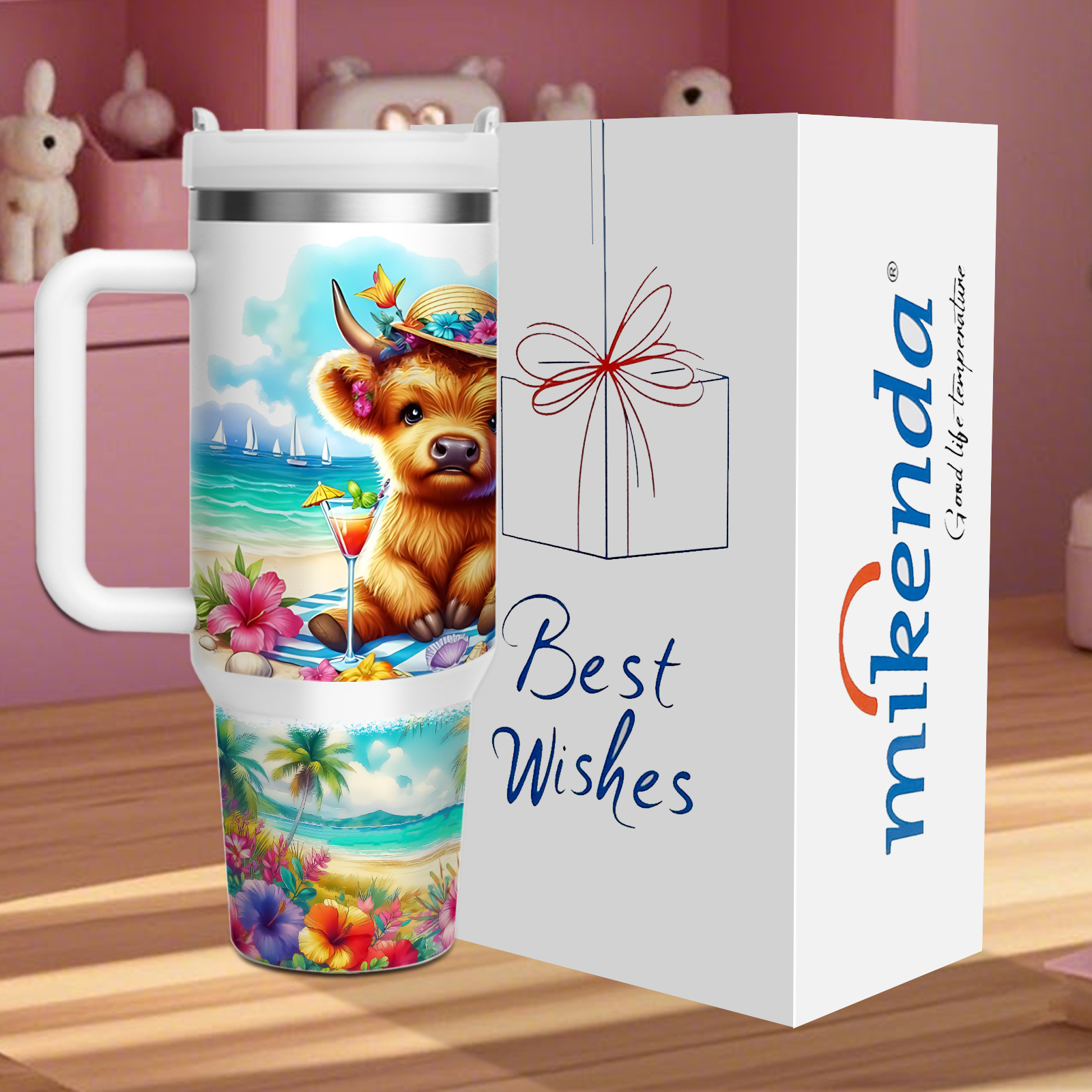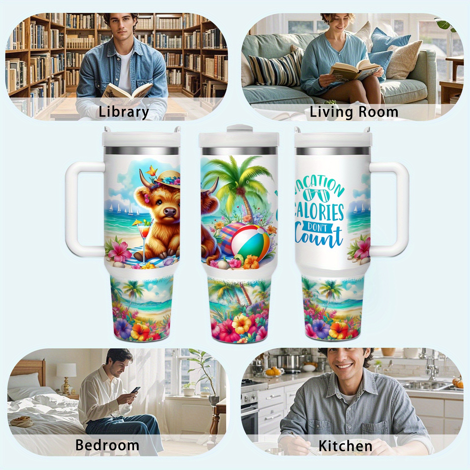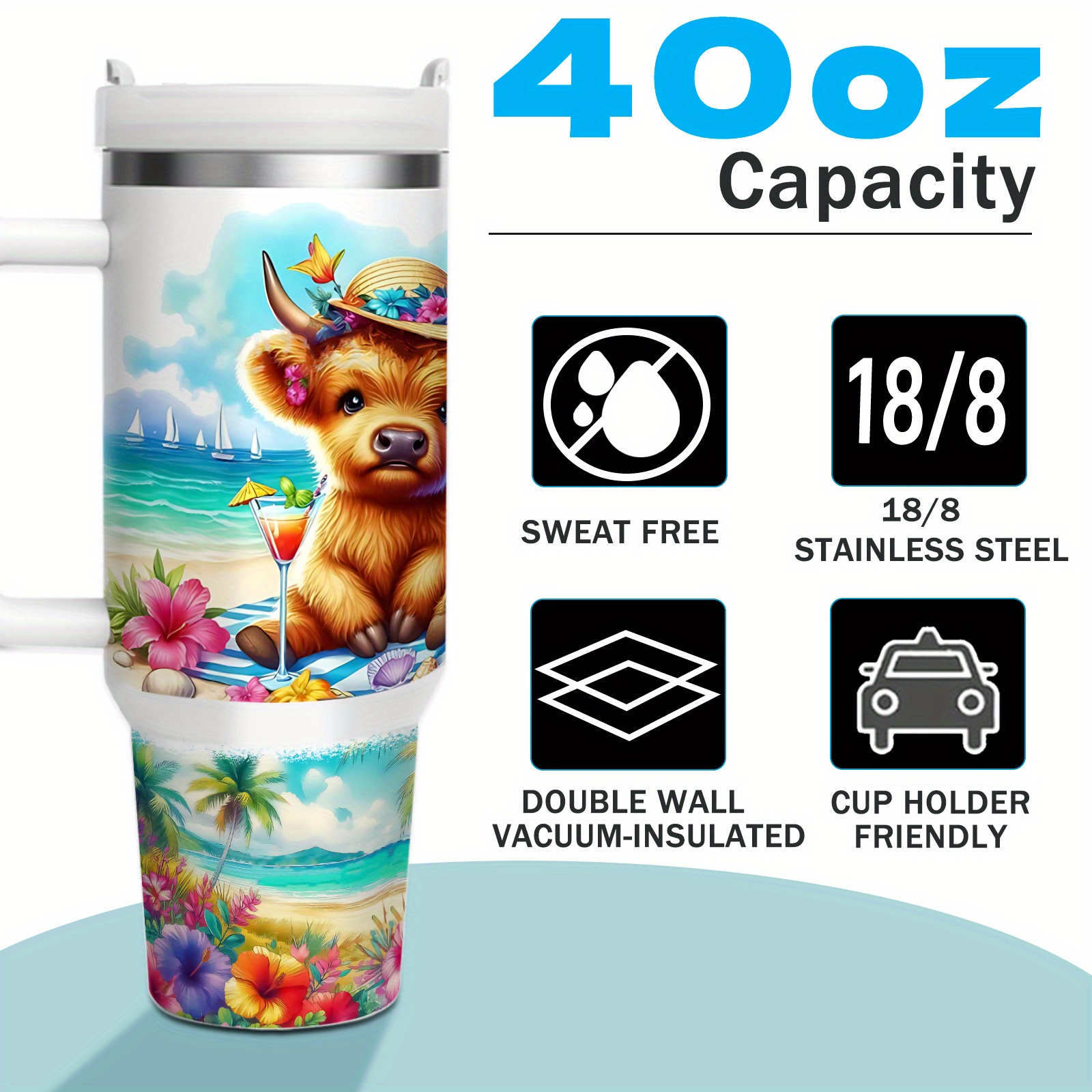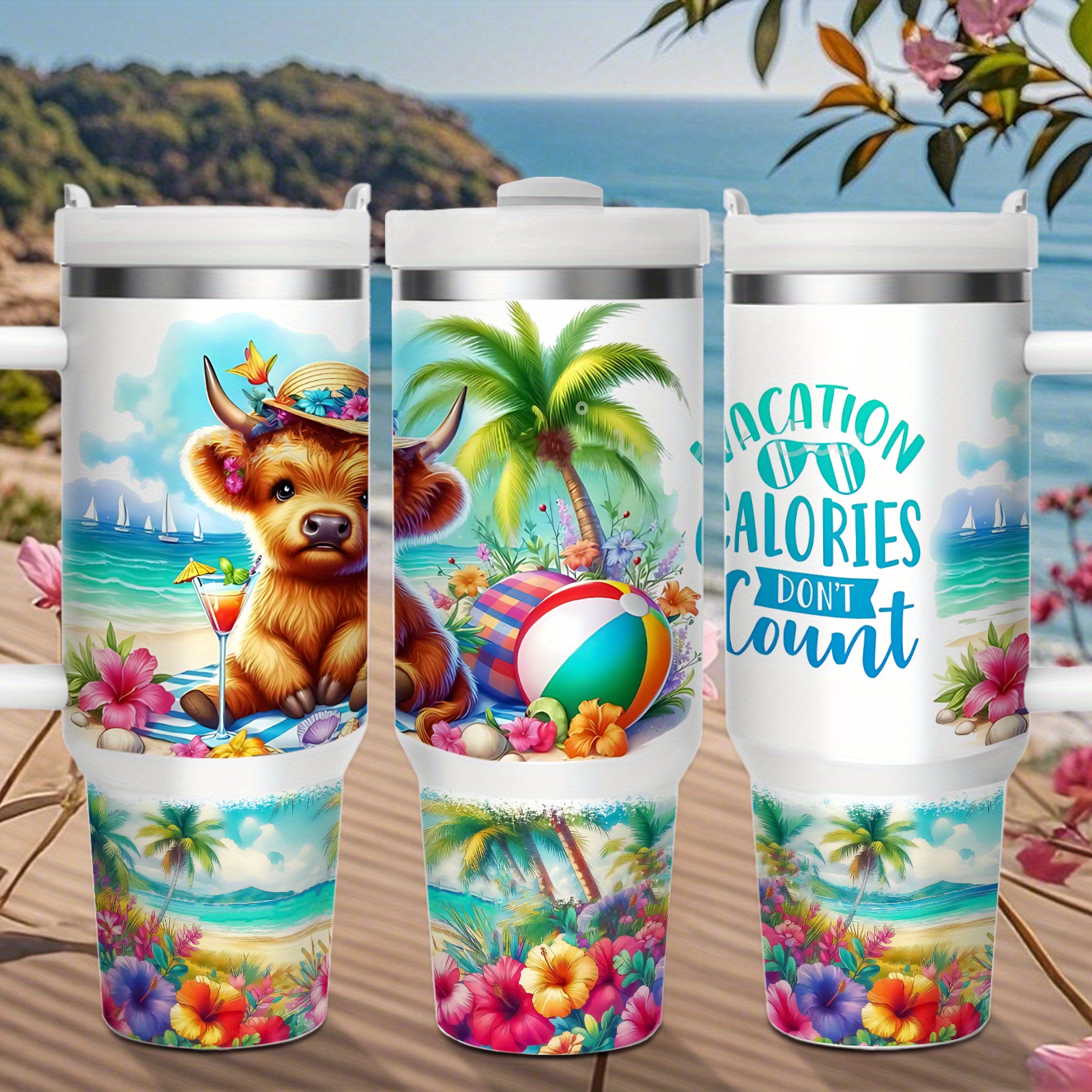 1pc 40oz/16oz Stainless Steel Tumbler with Lid And Straw, Double Wall Vacuum Insulated, Sea Turtle And Starfish Design, Keeps Drinks Hot 12H/Cold 24H, Ideal for Home, Office, Perfect for Christmas, Thanksgiving, Valentine's D