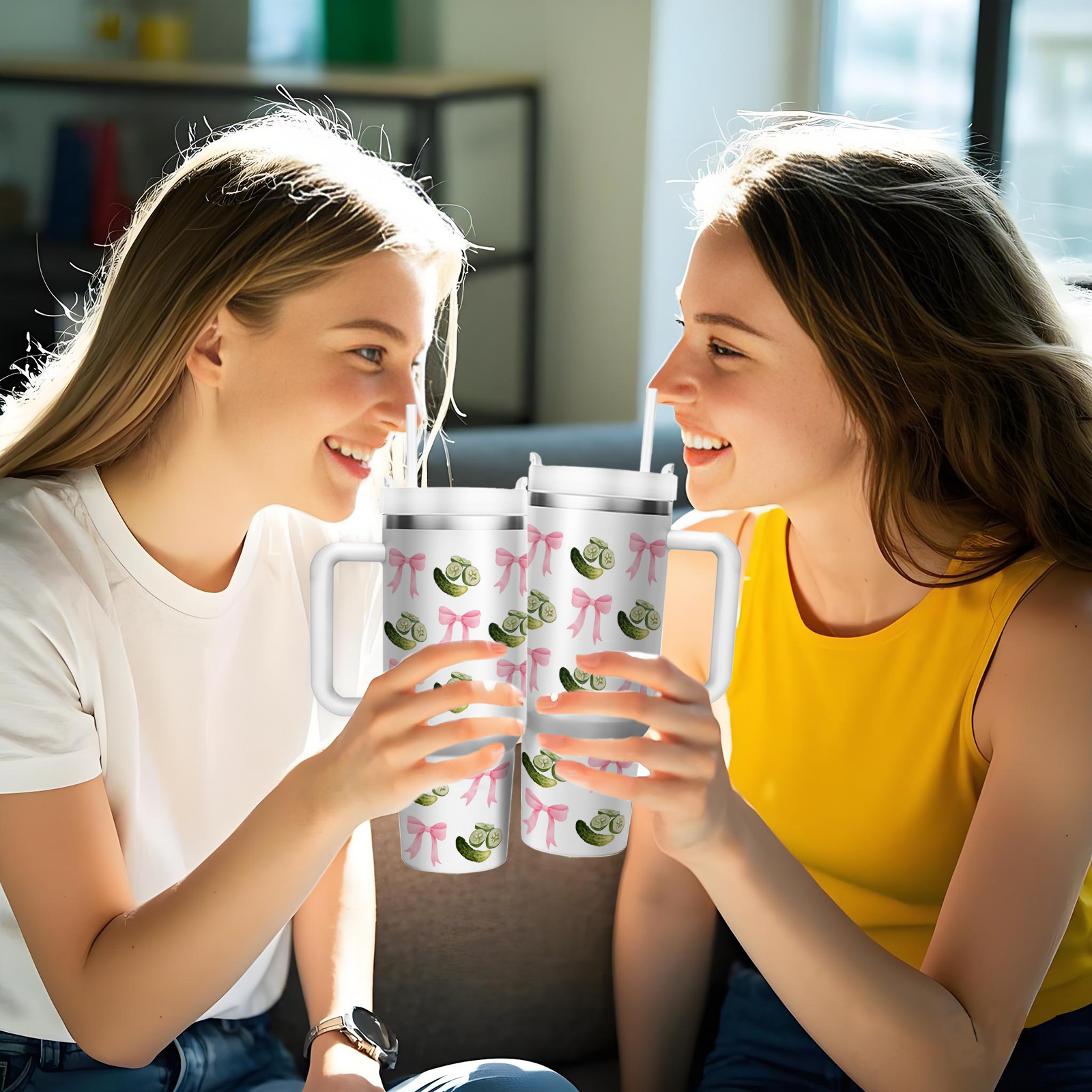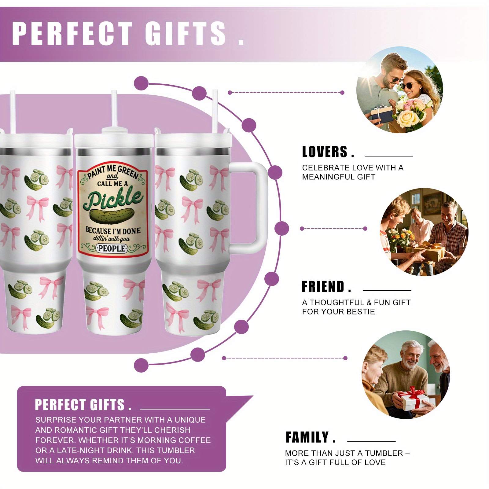 1pc 40oz Humorous Pickle-Themed Stainless Steel Tumbler with "Paint Me Green & Call Me A Pickle" Quote, Vacuum Insulated Cup Keeps Drinks Hot 12H/Cold 24H, Spill-Proof Lid & Straw, Cute Pickle Design with Pink Bows & Dill Pic