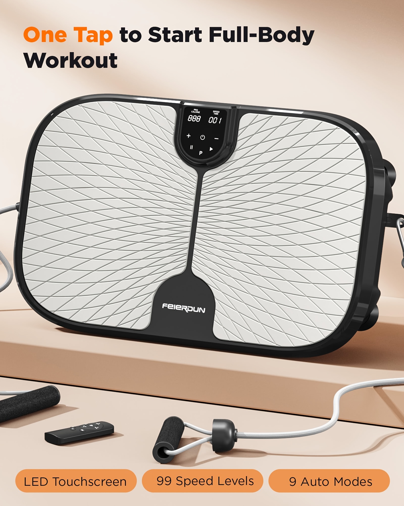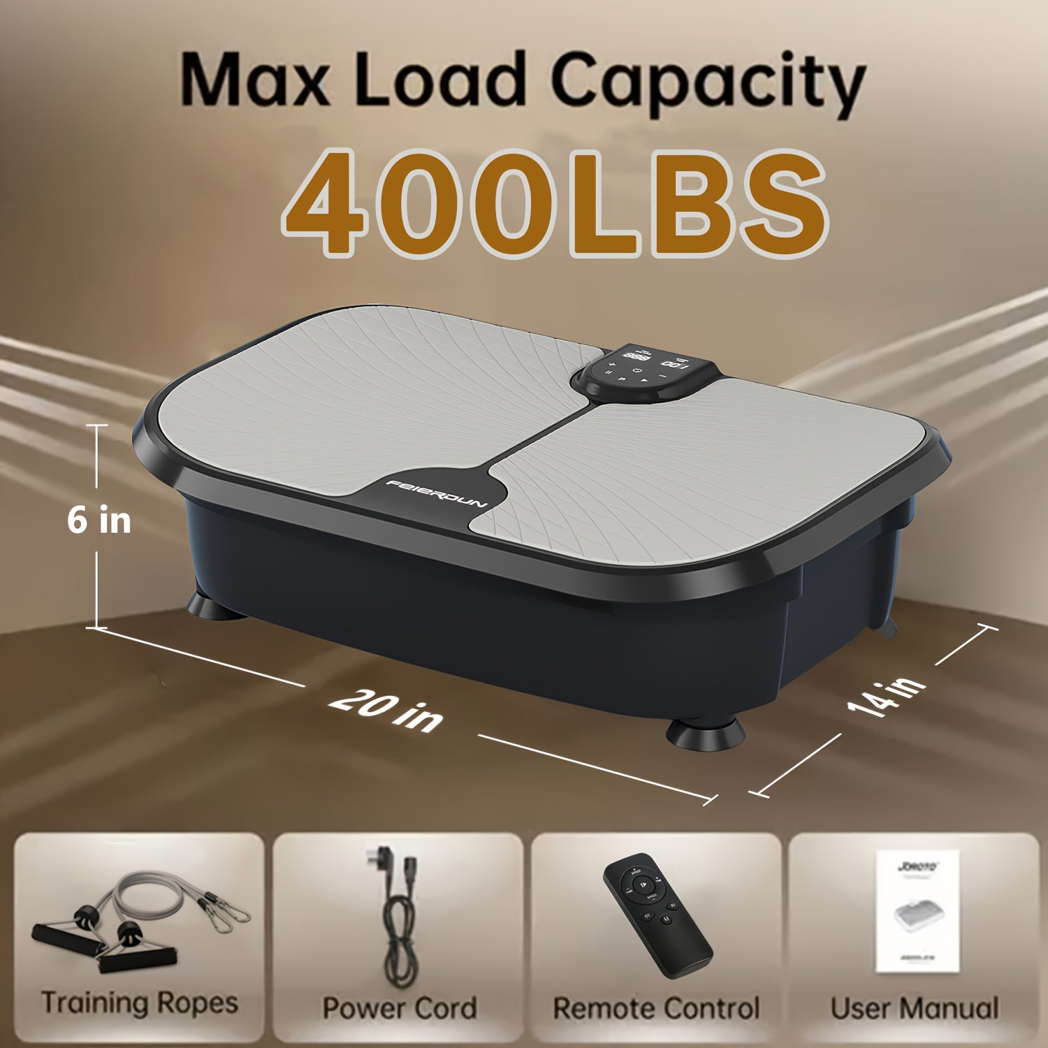 FEIERDUNSTYO Vibration Plate Exercise Machine For Lymphatic Drainage, Power Vibrate Stand Shake Board 400Lbs Capacity Whole Body Workout Waver With Fitness Resistance Bands Weight Loss Gifts For Women Men, Without Battery
