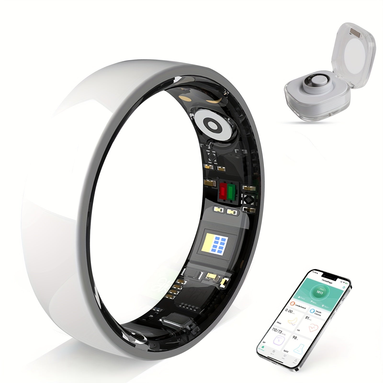 Smart Ring For Men And Women, Crystal Charging Case - Fitness And Sleep Tracker, Step Distance Calorie Monitoring, Multiple Exercise Modes, Magnetic Charging - Stylish Stainless Steel Design, IP68 Waterproof, Holiday Gift
